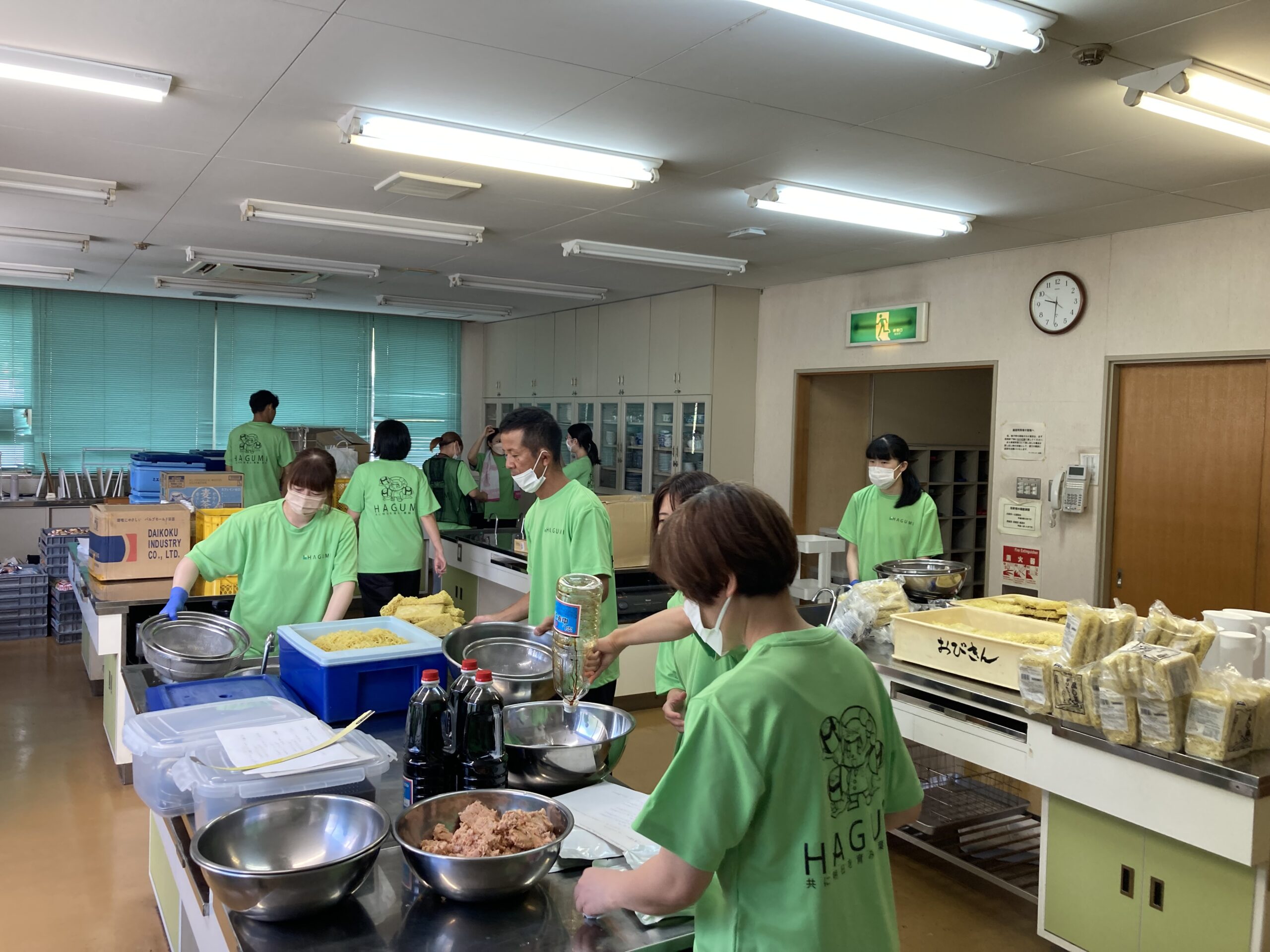 当日は、社員50名がこの日のために作ったお揃いの「はぐみTシャツ」を着て、それぞれ担当場所で協力しながら、朝から準備を行いました。普段は別々の事業所にいる社員同士の交流の場ともなりました。