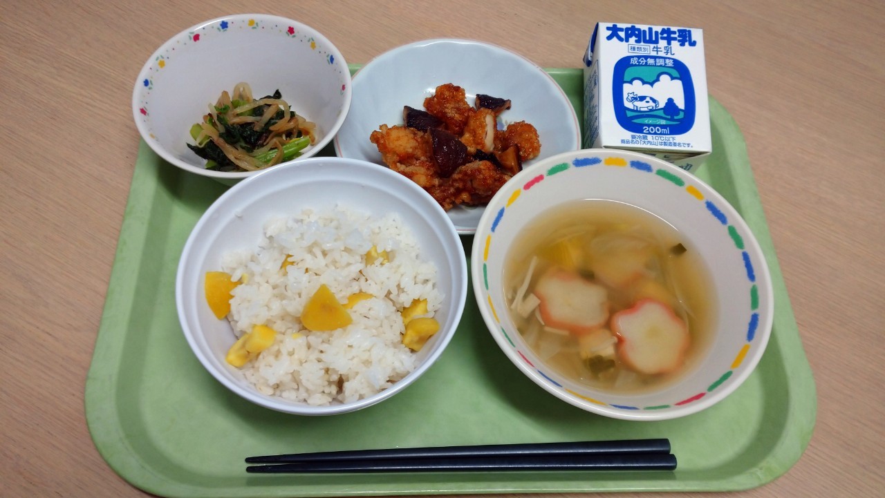 あゆみ特別支援学校の子どもたちも栗ごはんは大好きで、たくさん食べてくれました♪