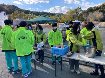 はぐみは、今年も30km地点での給食所を担当させていただき、”松阪牛”を使った牛汁「ちゃちゃも汁」を提供しました。