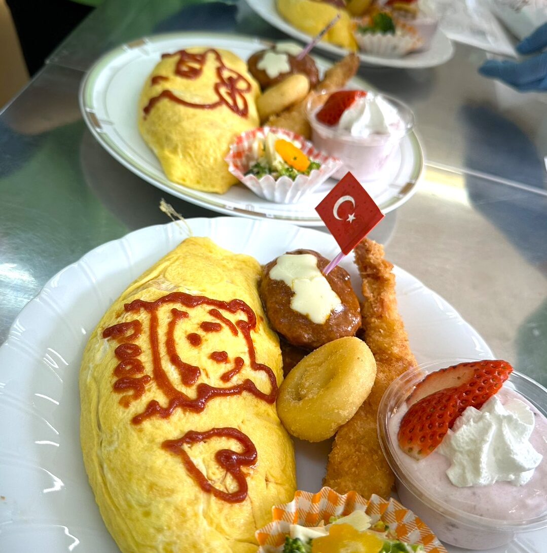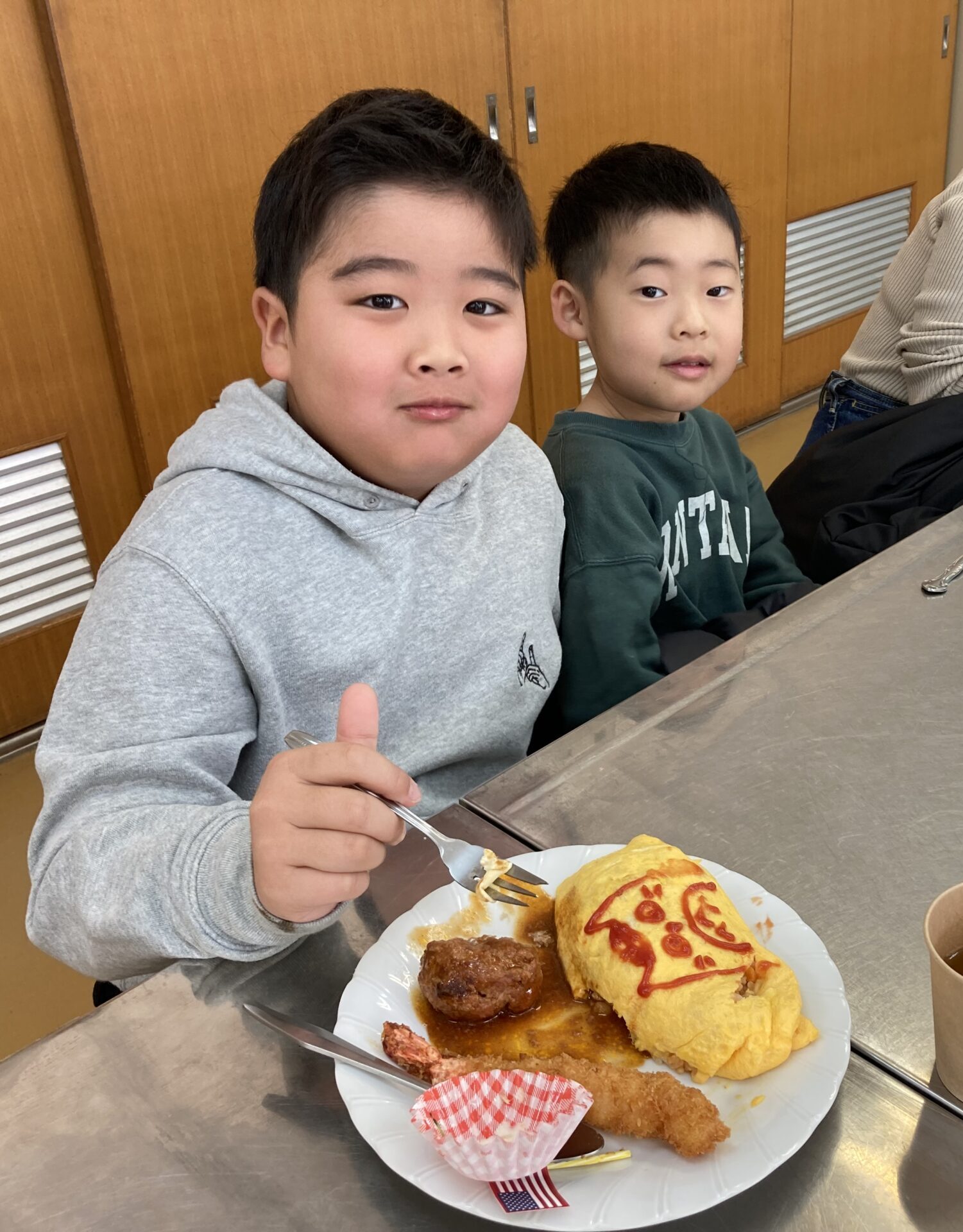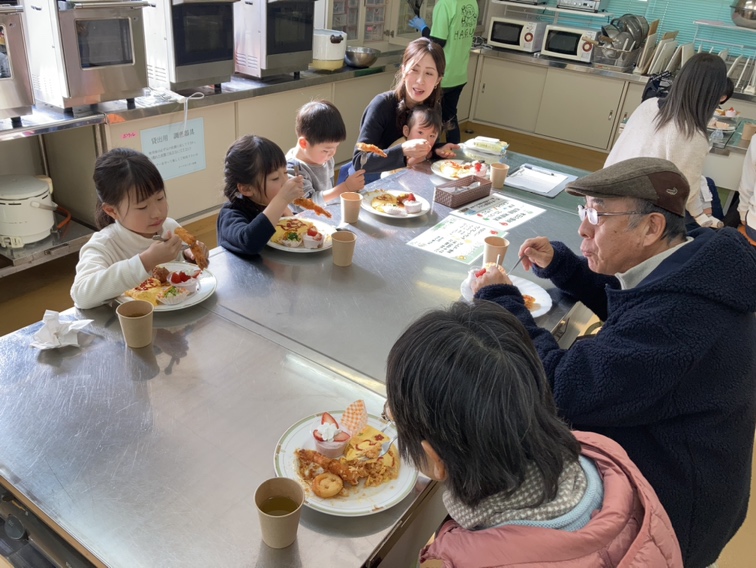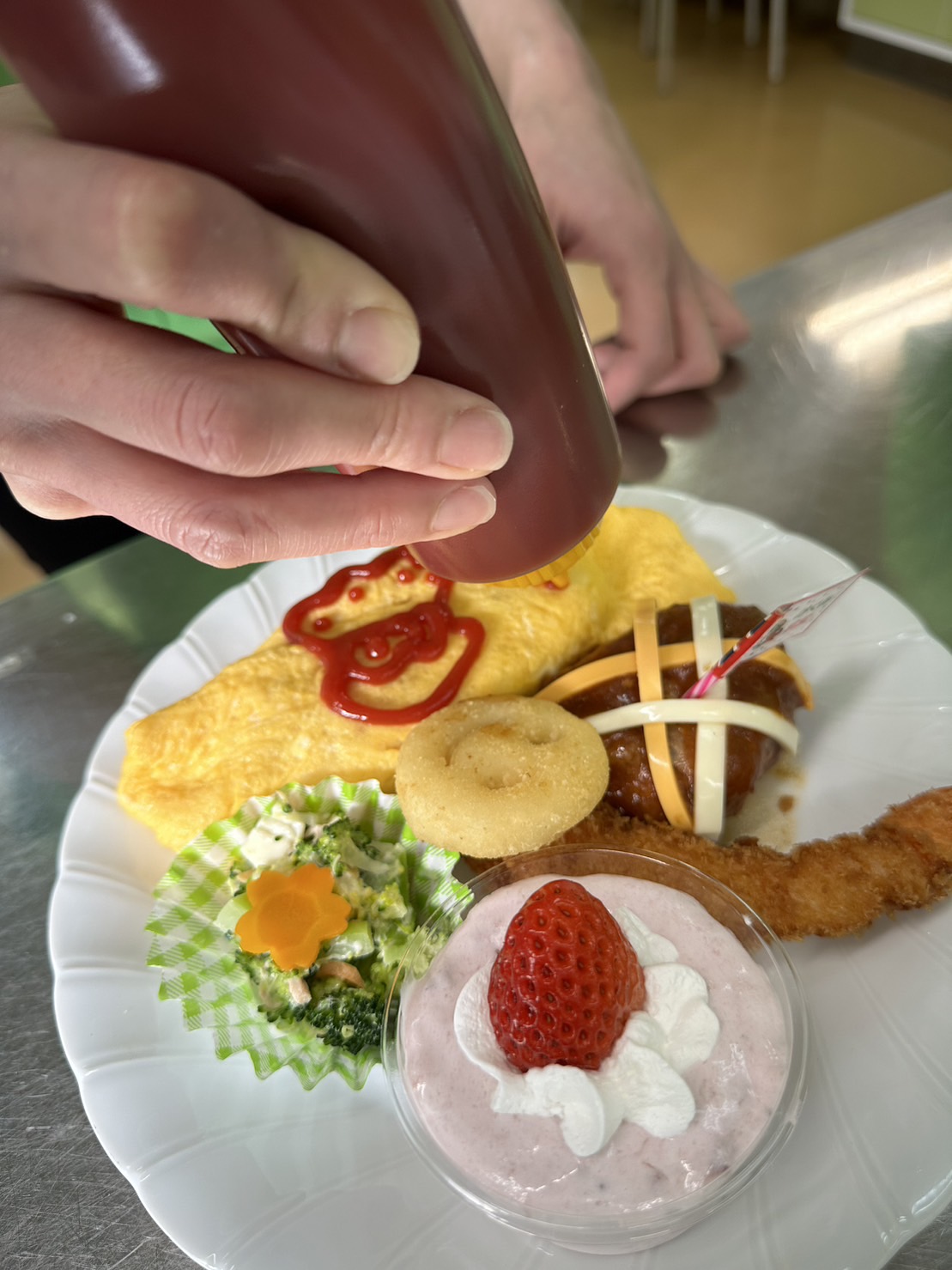 1月はワンプレートランチ!お子様ランチ風でオムライスにハンバーグ、エビフライ🦐、いちごムース🍓などなど盛りだくさんでした(^^♪ オムライスにはケチャップでキャラクターを描き、「ドラえもんやー!」「これなんのキャラクターやっけ?」など会話を楽しんでいただいている姿もありました✨今回も松阪産のお米や野菜をなどの地元野菜をたくさん使っています🥦