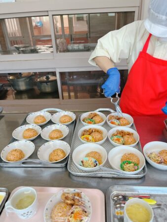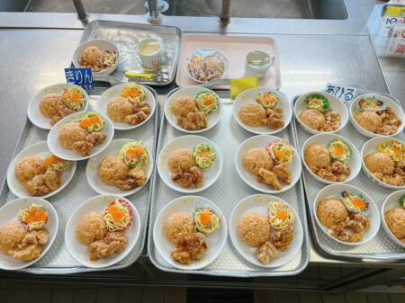 子供達から「美味しい!!今日の給食全部好き♡」「コーンスープおかわり」「唐揚げ美味しい」 と言う嬉しい声がたくさん聞こえてきました。