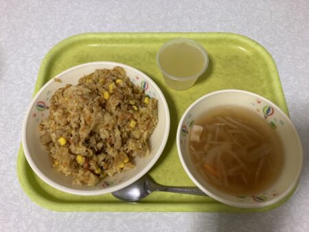 インディアンライスは、豚肉や野菜などの具材を、カレー風味のご飯に混ぜた料理で、給食でも人気メニューです。