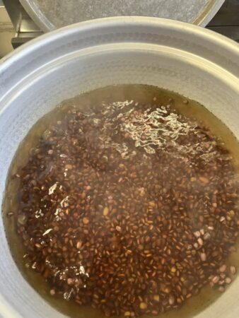 朝から小豆を茹でてご飯は小豆の茹で汁を使って炊き、赤飯を作りました🍚