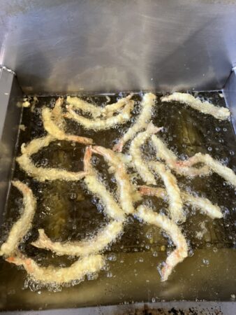 天ぷらの盛り合わせはピーマン、かぼちゃ、エビの天ぷらです🦐