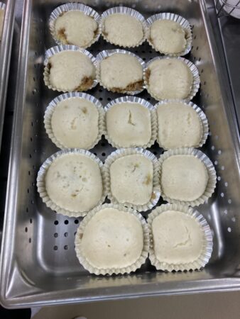 あんは、前もって加熱してあるのでオーブンのスチームで12分蒸します。