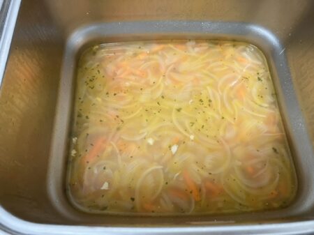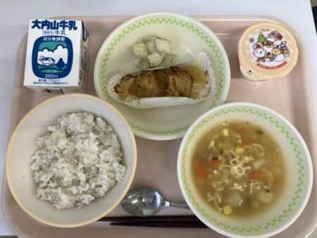 子供に人気のABCマクりが入ったスープもあり、デザートにはイチゴプリンがついて大満足🍓