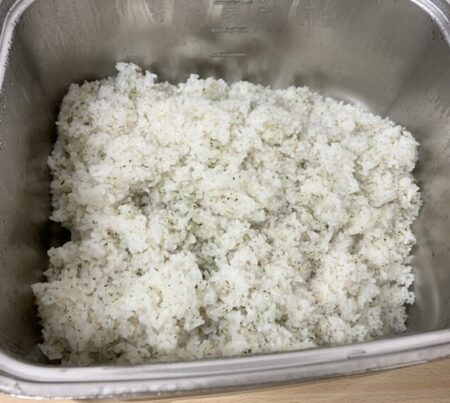 ガーリックライスは炊く前にニンニクの香りを移したオイルを入れ、炊き上がりにパセリを振り完成✨