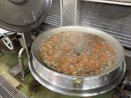 そこへ松阪牛と特産のしめじ、大根とにんじんを加えてコトコト煮込んだ熱々お汁が出来上がりです!
