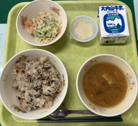 給食の歴史をたどる献立で、この日は大正時代の給食を再現したメニューでした。