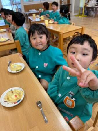 給食を見た子どもたちは「わあ!かわいい!」と、とても嬉しそうな様子😆