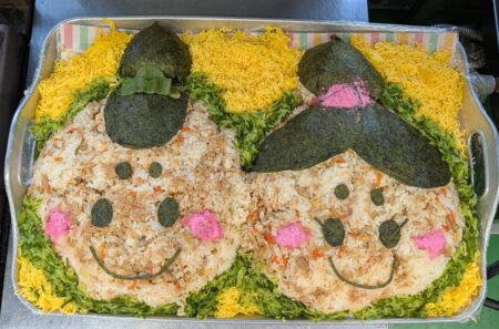 お内裏様とお雛様をイメージしたごはんや、お花に見立てた華やかなちらし寿司を用意しました🌸
