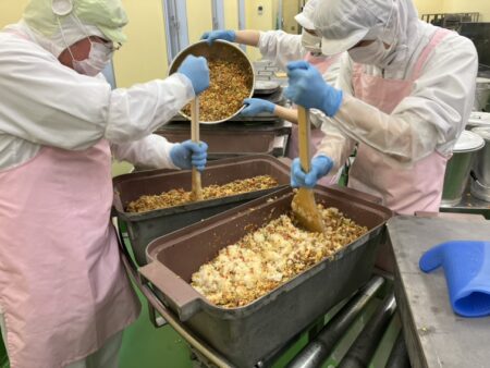 出来上がったちらし寿司の具を炊きあがったご飯に混ぜ合わせるのは大変でしたが彩りも良く綺麗に仕上がりました🌸