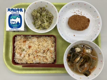 またカツオと昆布の出汁が効いたすまし汁とポークコロッケも一緒に満足感のある給食ができたと思います😌✨