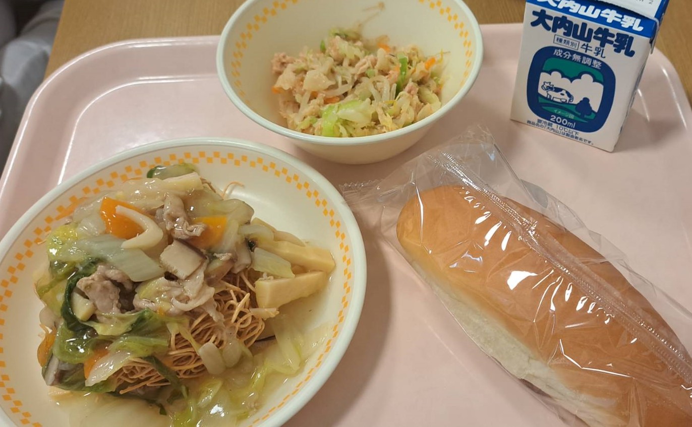 これをあんかけやきそばにできないか・・・と栄養士の先生からのご要望で、今回初めて「あんかけ堅焼きそば」を提供しました!