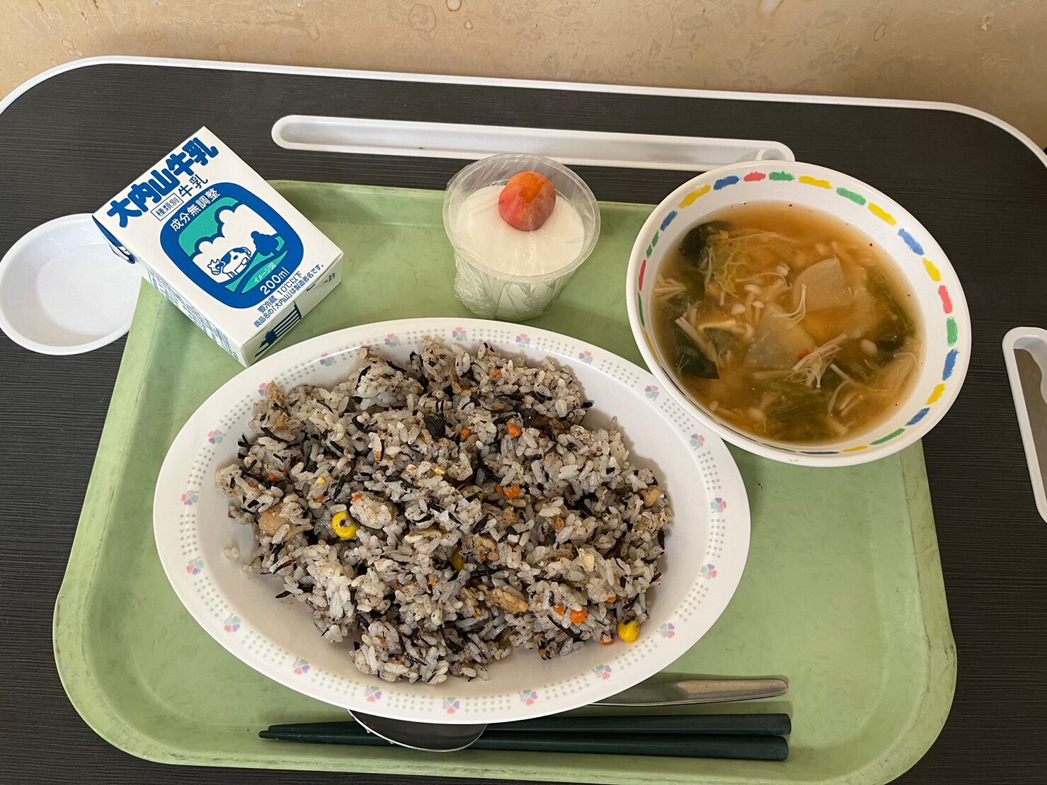 ひじき炒飯は、ひじきや鶏肉、油揚げ、にんじん、とうもろこしを炒め煮した具材にご飯を混ぜ合わせたもので、しっかりとした味で食欲をそそります。