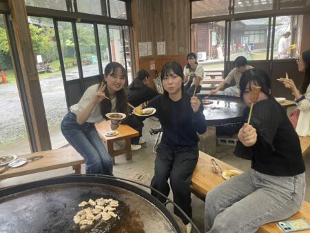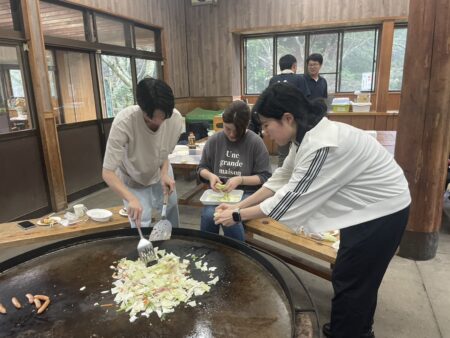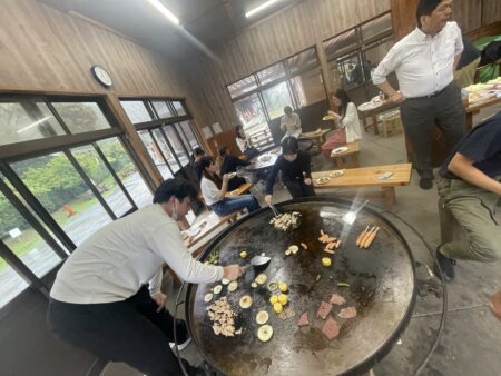 雨の心配をしていましたが、屋根ありの部屋で大きな鉄板を囲んでの開催となりました!