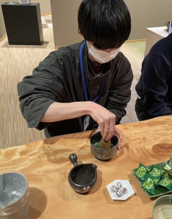 茶道体験では茶筅を使いお抹茶を立てていただきます。